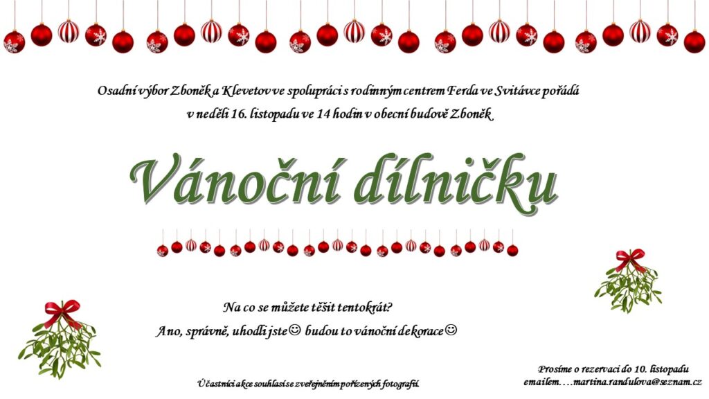 - Vánoční dílnička – 16. listopadu ve 14 hodin